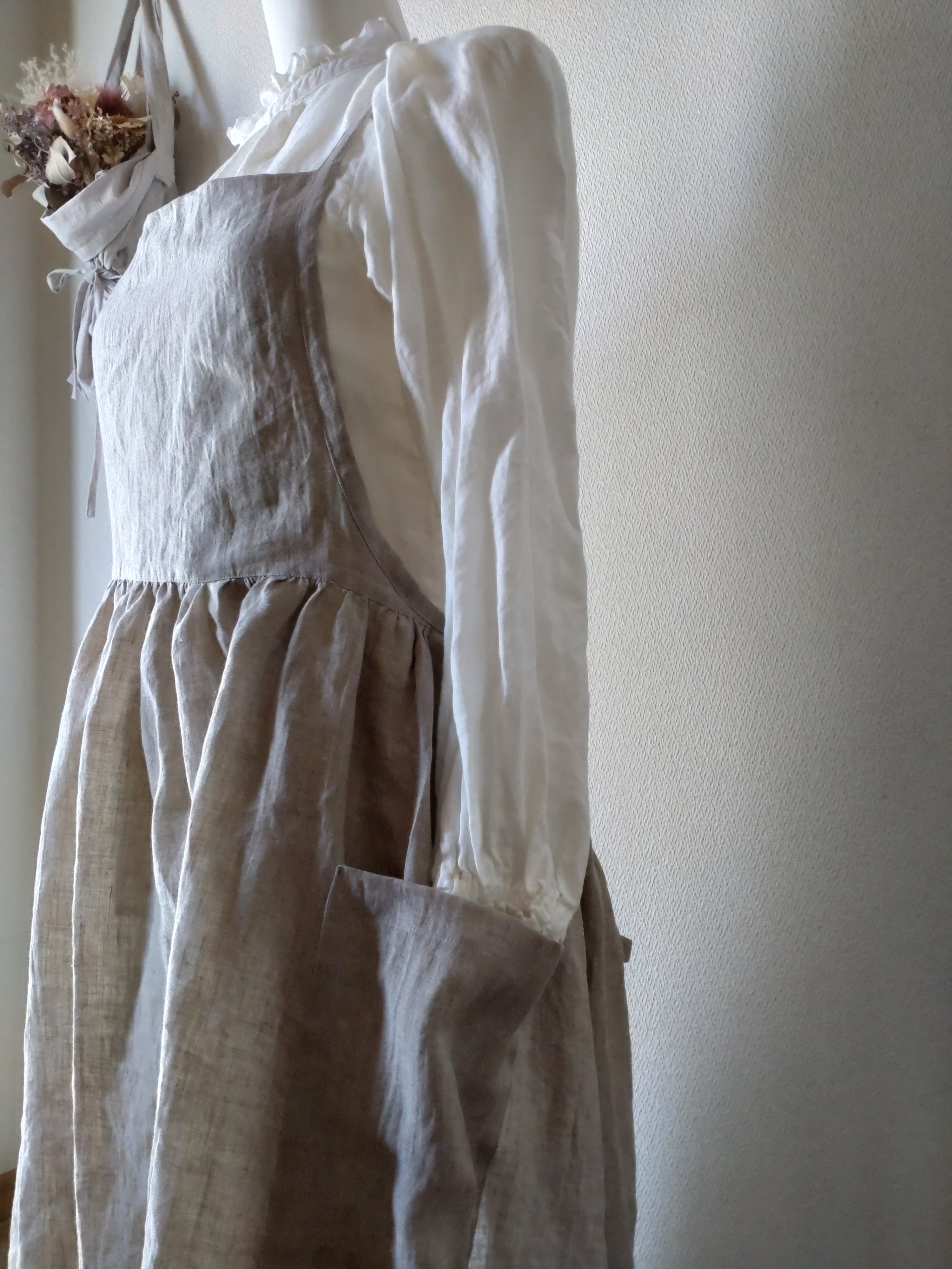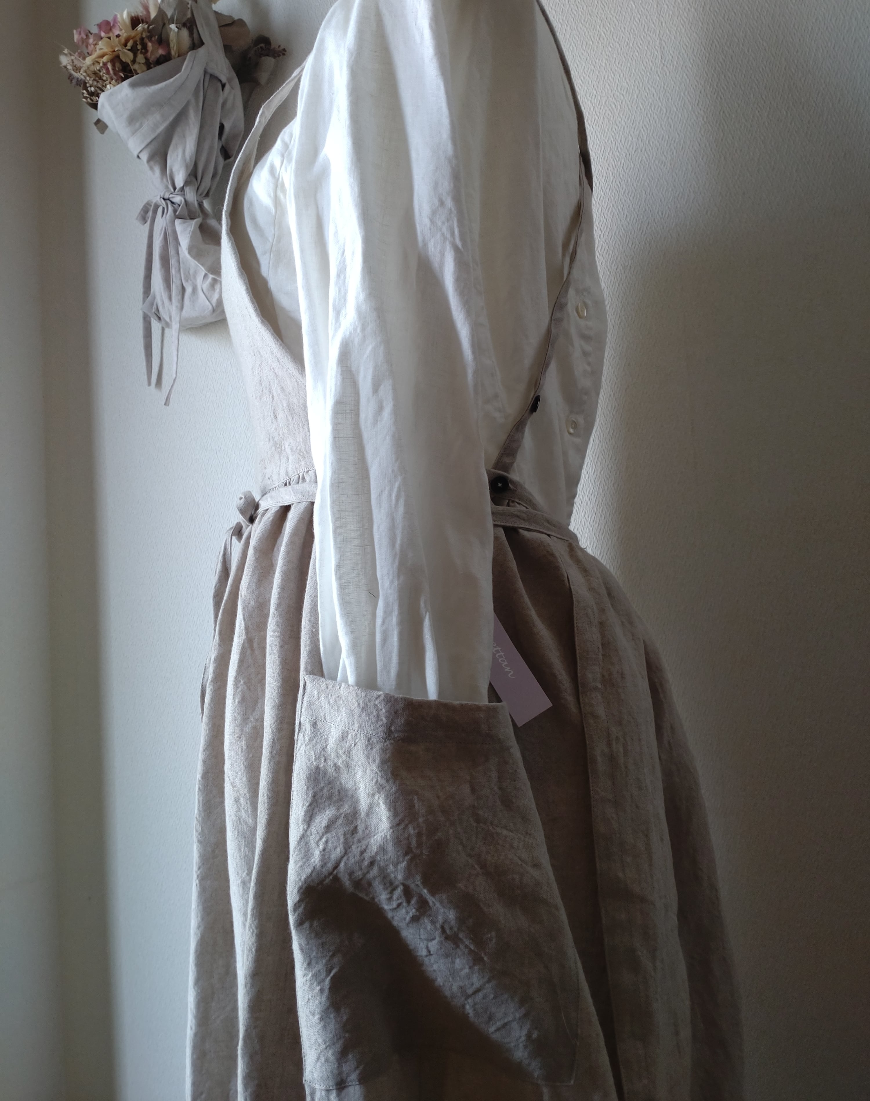 たっぷりの日光にあてた天日干しのリネン100%で作りました。