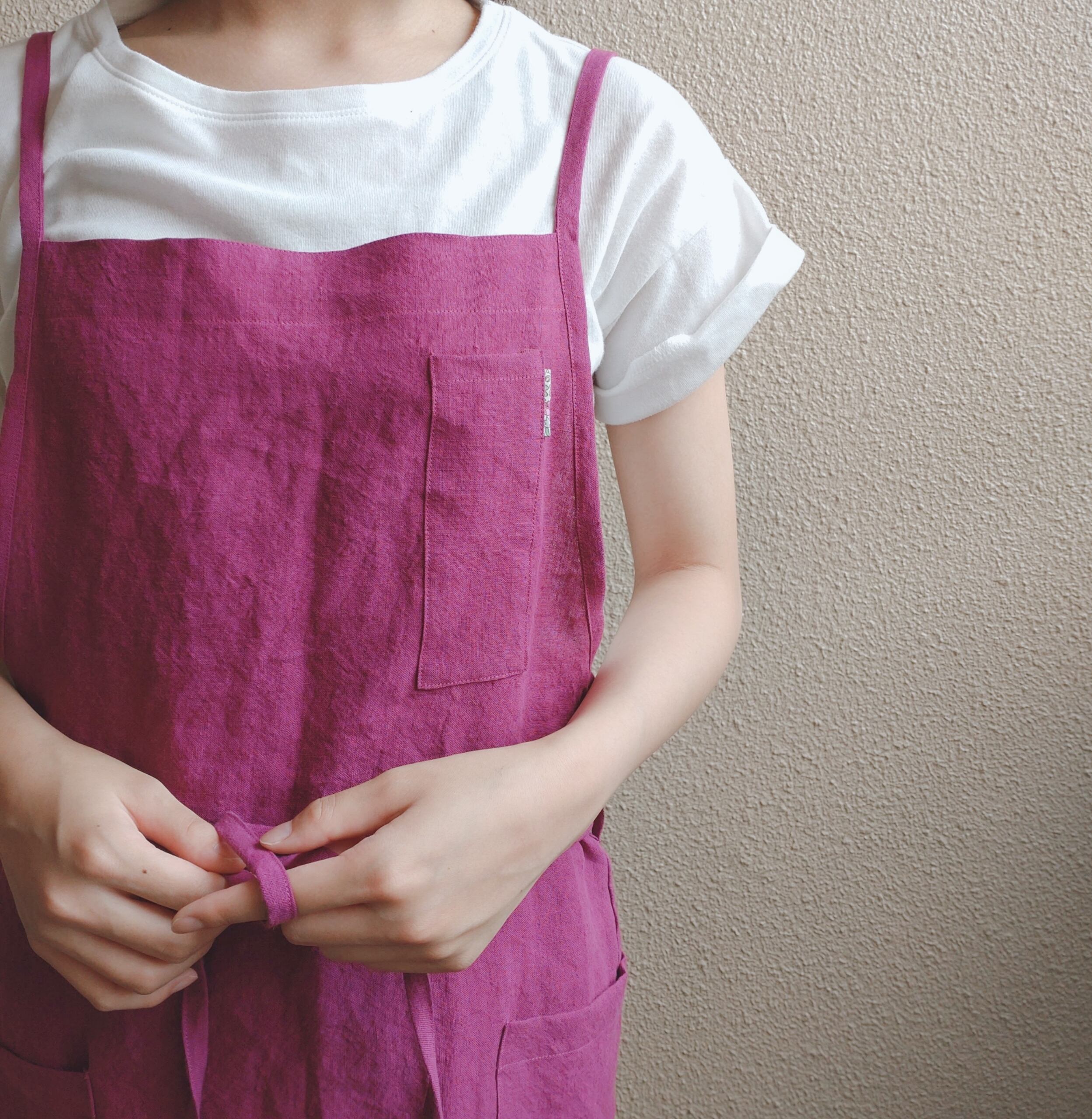 ふっくらとした程よいハリこしと、使い込んだようなくったりとした肌馴染みの良い柔らな風合いが特長のベルギーリネンで作ったエプロンです。